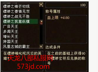 4:大票称号----参与楼兰大缥缈峰击杀秋水大妈即可获得飘渺神符,集够一定数量的飘渺神符即可兑换飘渺称号最高级为飘渺之唯我独尊,100阅历值