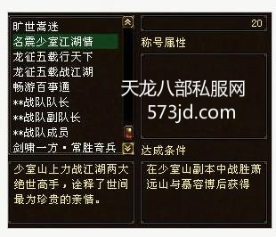 8:少室山称号----琢磨不透的策划们安排了这个称号,每一个通关少室山的玩家都有的,20阅历值。