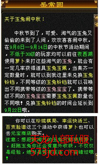 天龙八部私服中秋活动攻略:可得玉兔珍兽