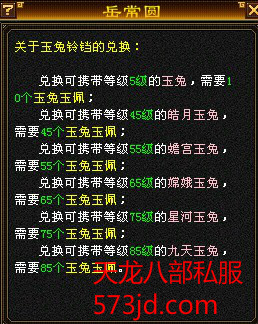 55个玉兔玉佩可兑换玉兔铃铛:携带等级55级的蟾宫玉兔
